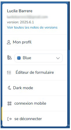 Le mode sombre permet de modifier l’affichage de l’interface en réduisant la luminosité des couleurs. Cette option est particulièrement utile pour réduire la fatigue oculaire, notamment dans des environnements peu éclairés.