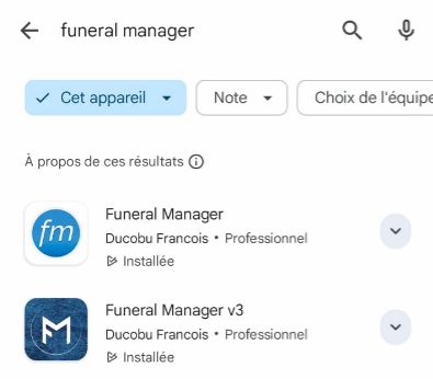 Rendez-vous dans l’app store Androïd ou Apple pour rechercher Funeral Manager et télécharger l’application (v2 ou v3 selon votre contrat)