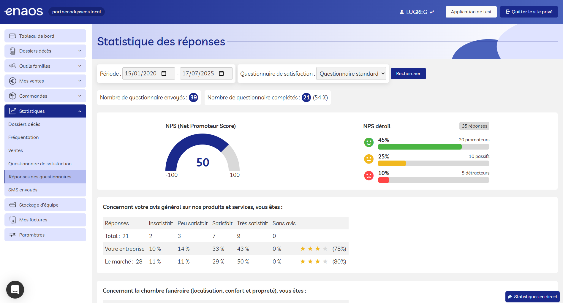 Vous pouvez consulter les réponses individuelles ainsi que votre score NPS global sur une période donnée via la page dédiée aux statistiques de satisfaction :