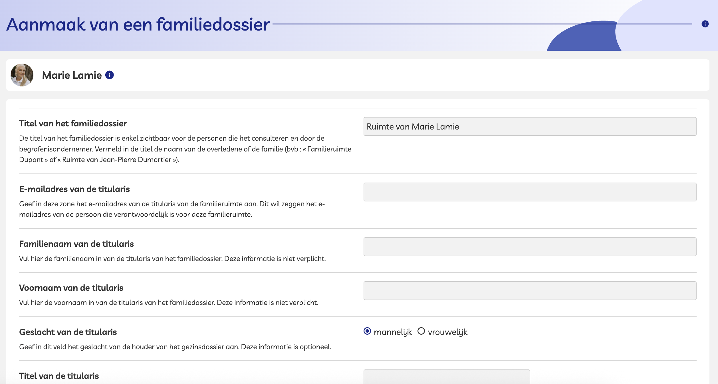 Stap 2 — Een nieuw familiedossier aanmaken